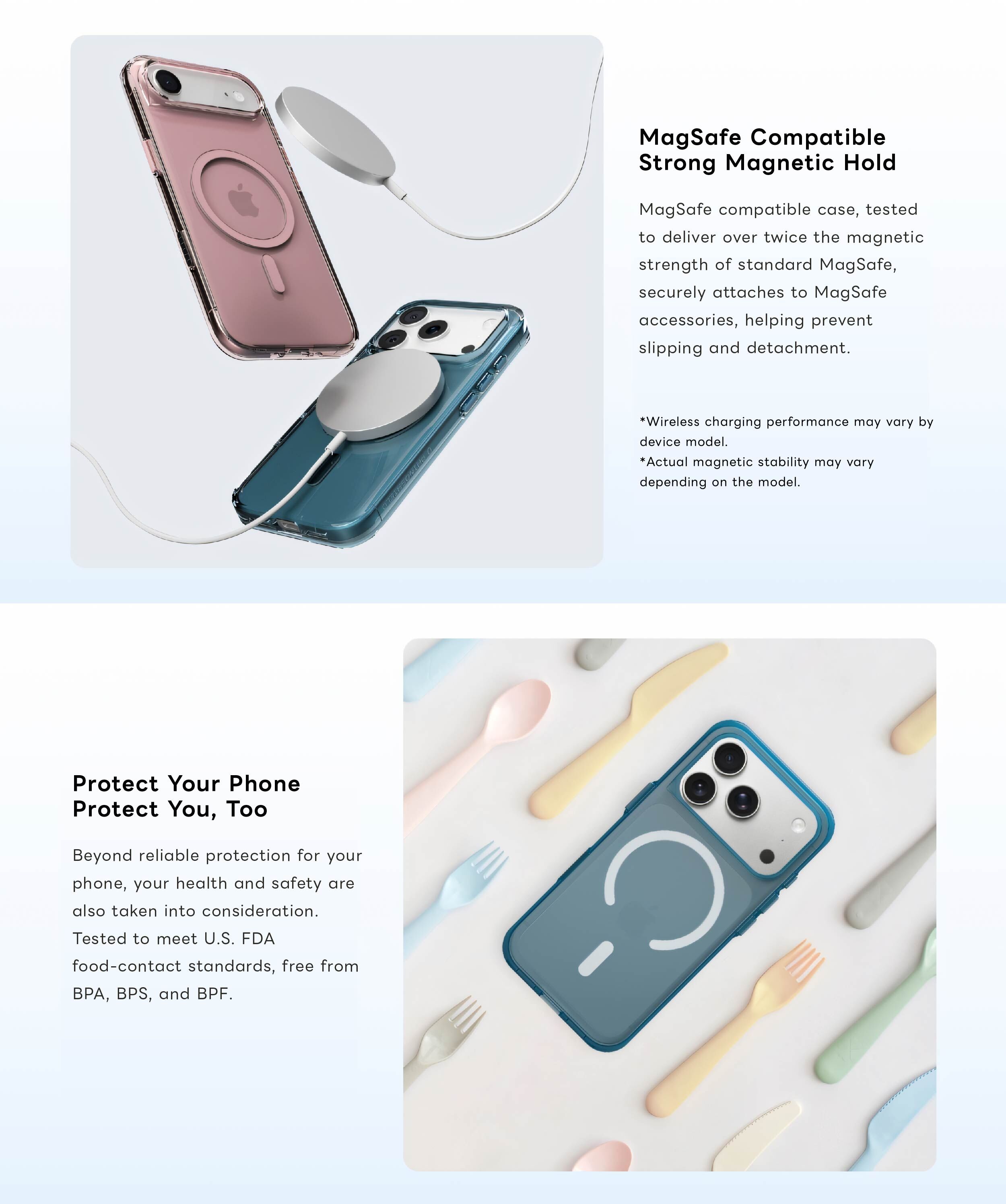 Material: Polymer blend, Neodymium magnet; Buttons: TPE; Camera Ring: TPE